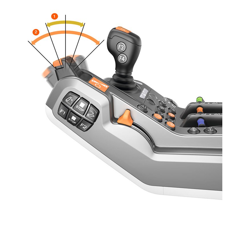 Sie bietet beste Ergonomie und ist Dreh- und Angelpunkt für entspanntes, effektives Arbeiten. Sie ist das Ergebnis umfangreicher Analysen der Bedienabläufe in der Kabine. Häufig benötigte Funktionen finden sich auf der Multifunktionsarmlehne, seltener benötigte Funktionen liegen auf der rechten Seitenkonsole.